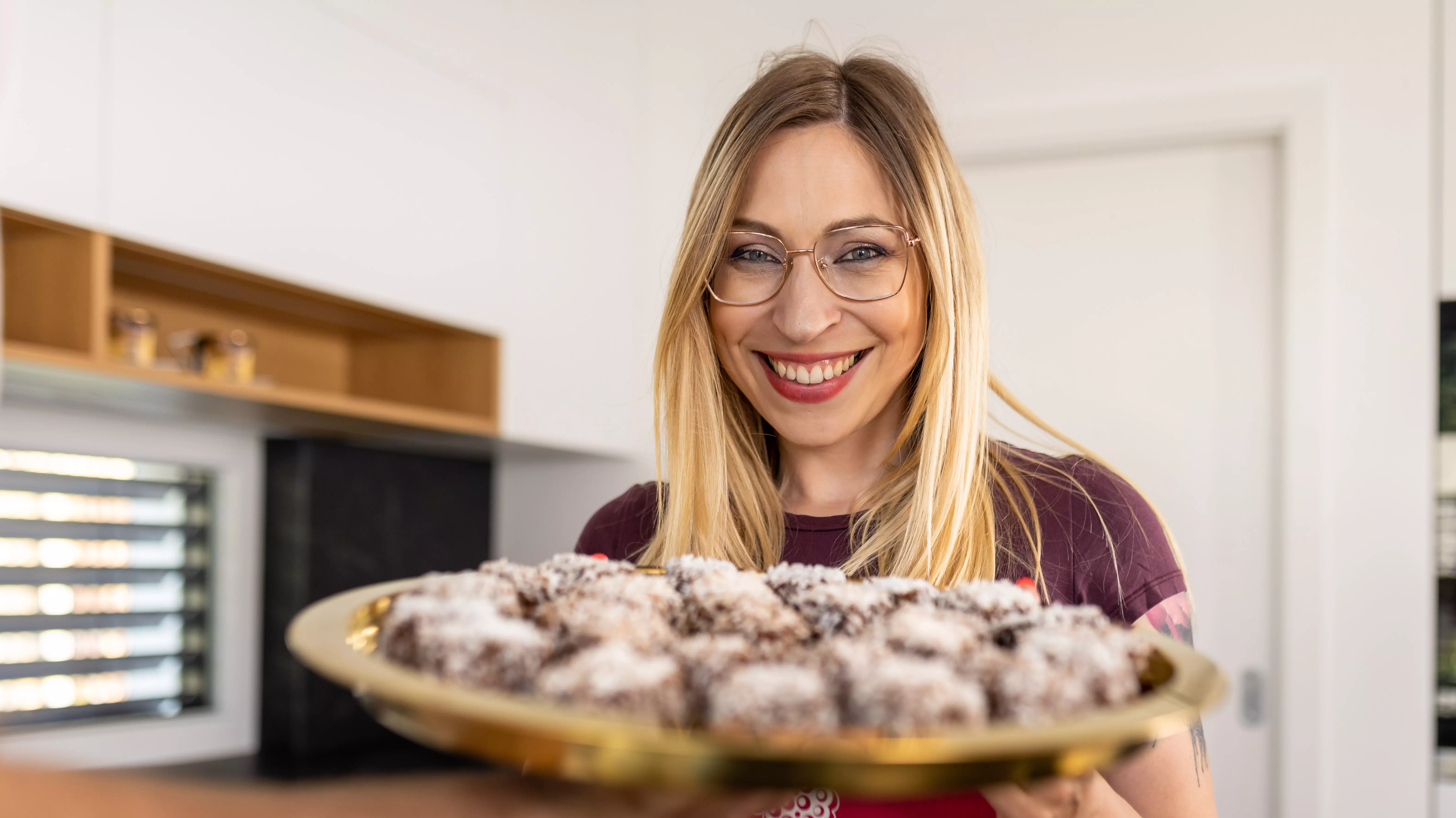 Čokoladu izlomite u zdjelu, te dodajte mlijeko i maslac. Sve zajedno miješajte dok se ne otopi. Ulijte u dublji tanjur i u drugi tanjur nasipajte naribani kokos. Kocke prvo uvaljajte u čokoladu pa u kokos.