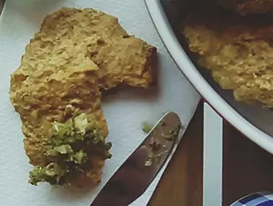 OPIS POSTUPKA: U posudu uliti jogurt i chia sjemenke te pustiti da smjesa odstoji barem 5 minuta. Potom u tu smjesu dodati lanene sjemenke, 1 žlicu maslinova ulja, 1/2 čajne žličice himalajske soli, integralno brašno i prašak za pecivo i promiješati. Na lim obložen papirom za pečenje oblikovati male lepinje žlicom. Lepinje peći oko pola sata na 180° u prethodno zagrijanoj pećnici. Pečene lepinje pokriti čistom kuhinjskom krpom i ostaviti da se ohlade. Za pesto je potrebno skuhati brokulu na pari, a kada je kuhana zgnječiti ju vilicom. U zgnječenu i ohlađenu brokulu dodati nasjeckane orahe, 2 žlice maslinova ulja, protisnuti češnjak, pola žličice himalajske soli, čili i limunov sok. Pesto od brokule ohladiti te poslužiti uz integralne lepinje.