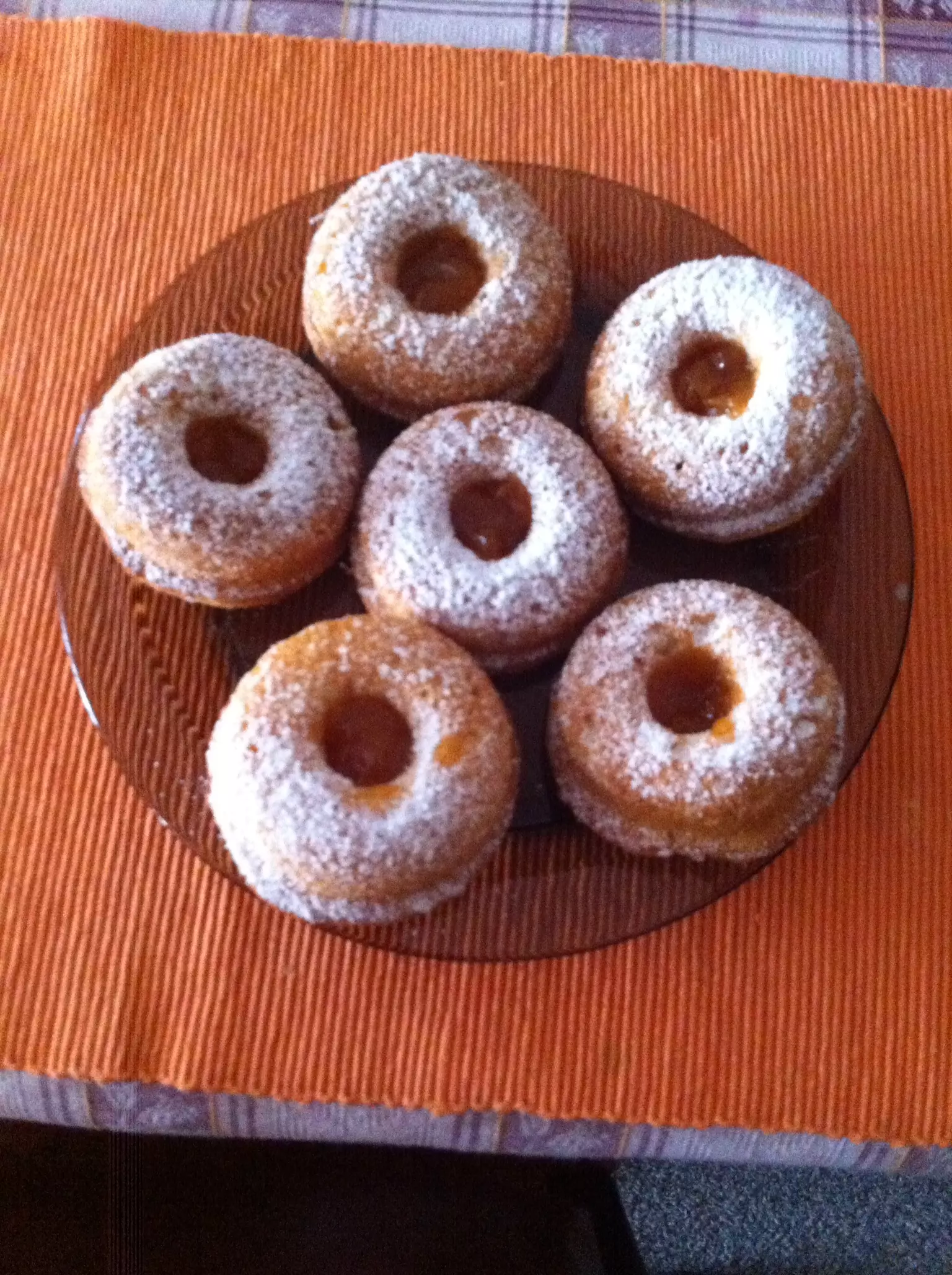 OPIS POSTUPKA: Pomiješamo brašno i kvas. Dodamo šećer, jaje i mlačno mlijeko. Mijesimo približno 5 minuta. Dodamo marmeladu, rastopljeni maslac, ulje, koricu od limuna i grubo mljevene bademe. Tijesto se pokriveno diže na toplom približno 20 minuta. Aparat za pečenje krafni dobro namažemo. Udubljenja do polovice napunimo tijestom. Mokrom žlicom tijesto lijepo izravnamo. Pokrijemo i još jednom ostavimo da se diže približno 15 minuta. Pečemo na srednjoj temperaturi 20-25 minuta. Pečene krafne odmah izvadimo iz aparata i vruče pospemo šećerom u prahu.